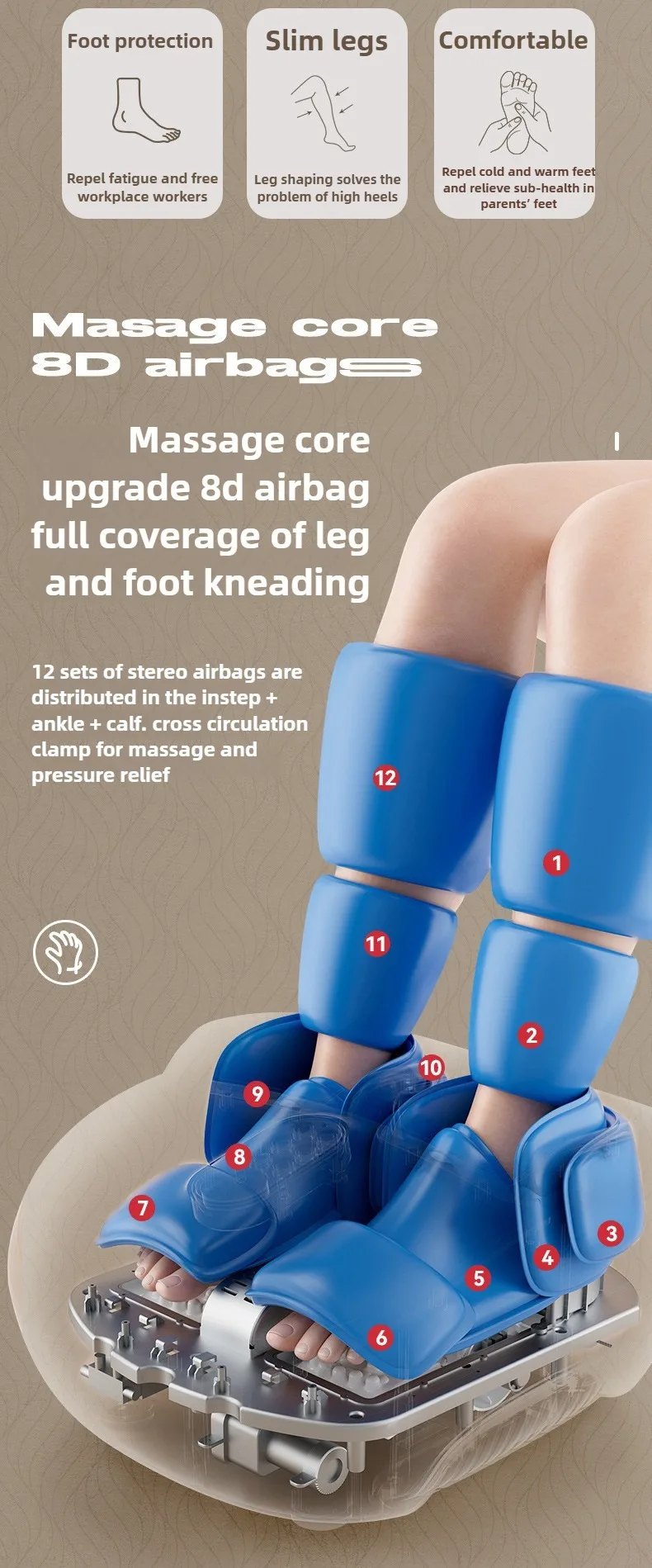 Foot Massager Electric Machine With Remote Fully Wrapped Air Bag Leg Massage With Heating 6D Smart Control Foot Massage Machine